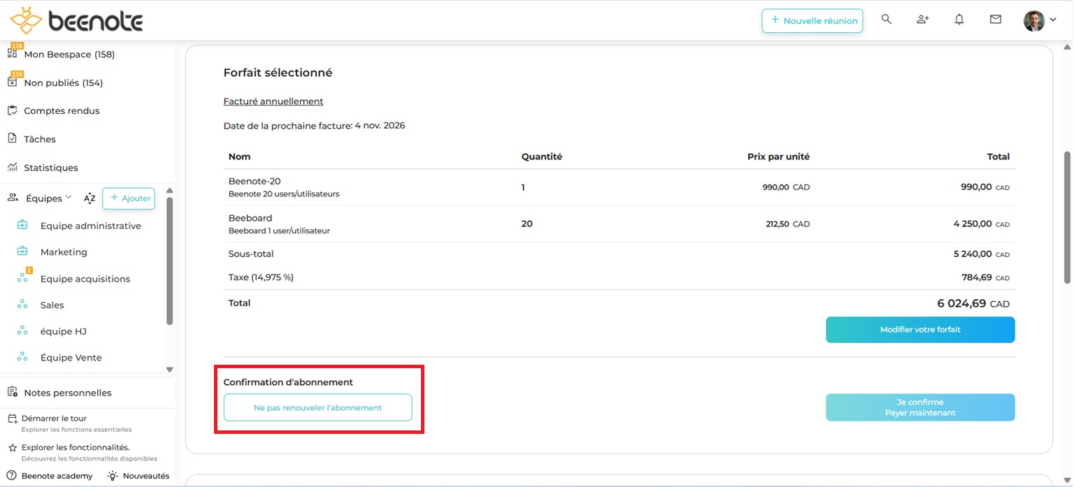 Vous pouvez de manière autonome ne pas renouveler l’abonnement de votre organisation à Beenote.