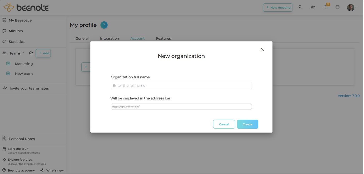 Once done, you have to follow the steps to set up an organization and invite the people you want to join this new organization.