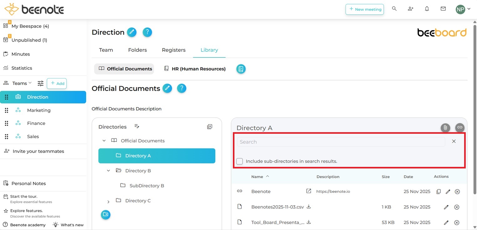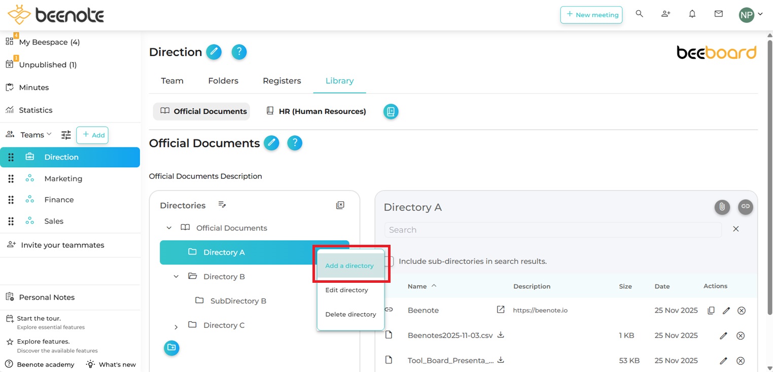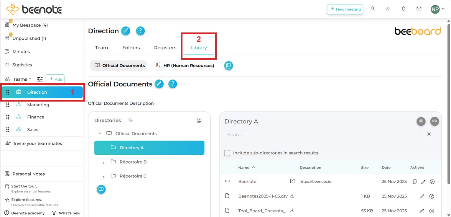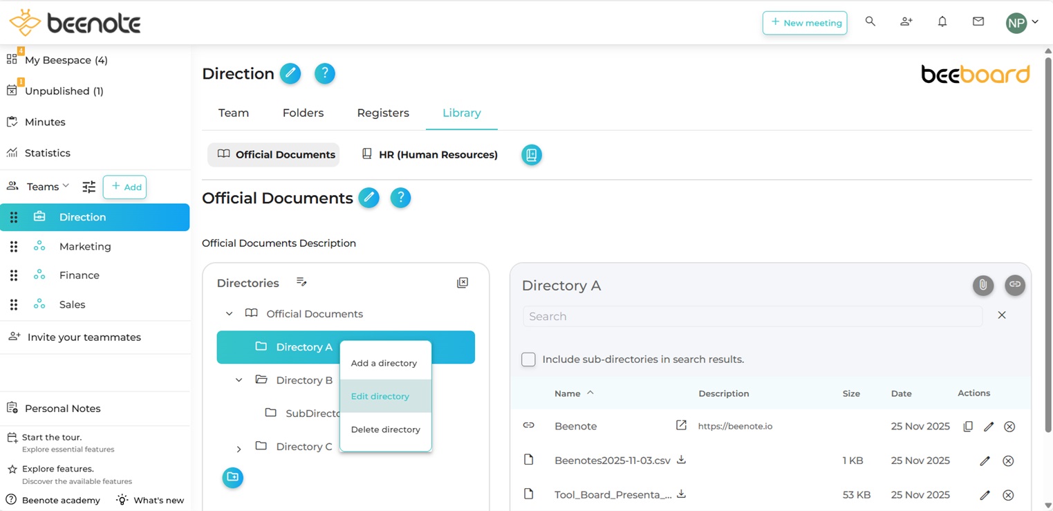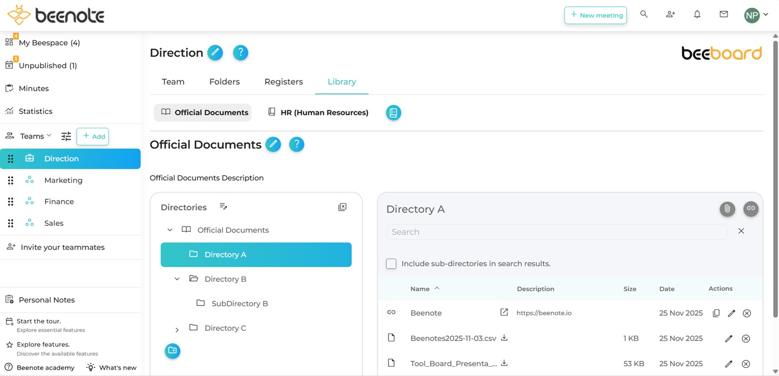 In addition, Beenote offers you a Company Book template, including different directories, to better guide you in the classification of your documentation.