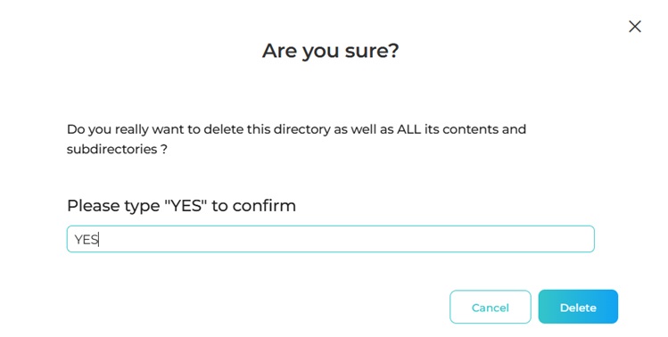 A new window will open and ask you to confirm the deletion of the directory and all its contents and the contents of subdirectories by pressing Yes.