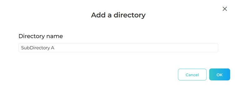 Then you need to enter the name of the subdirectory and press Ok to save it.