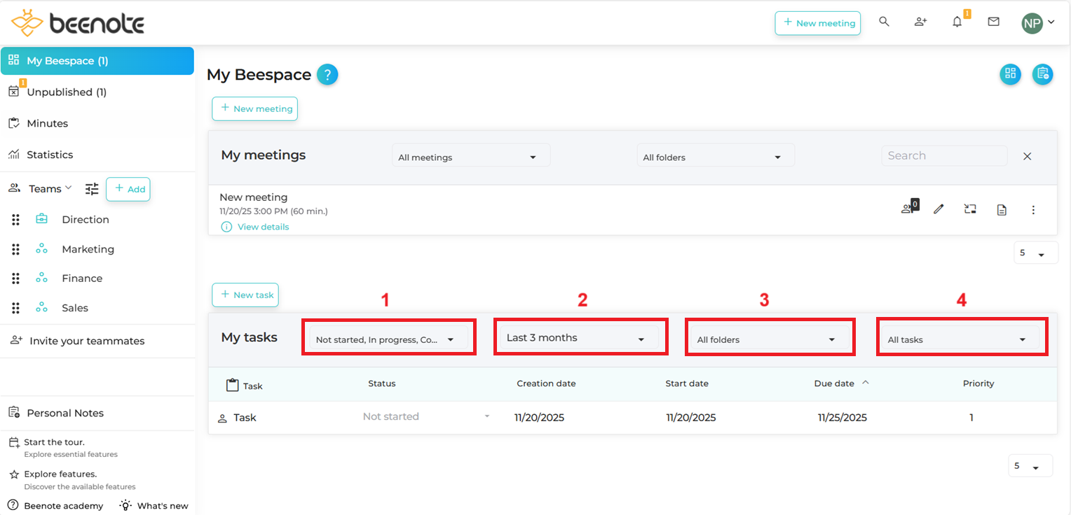 If you have created a task outside of a meeting or during a meeting and want to edit it, here’s how: