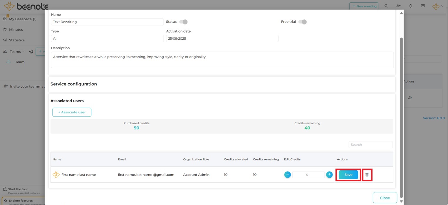 8. Assign the desired credit to each user in the Modify Credits field, then click on Save.