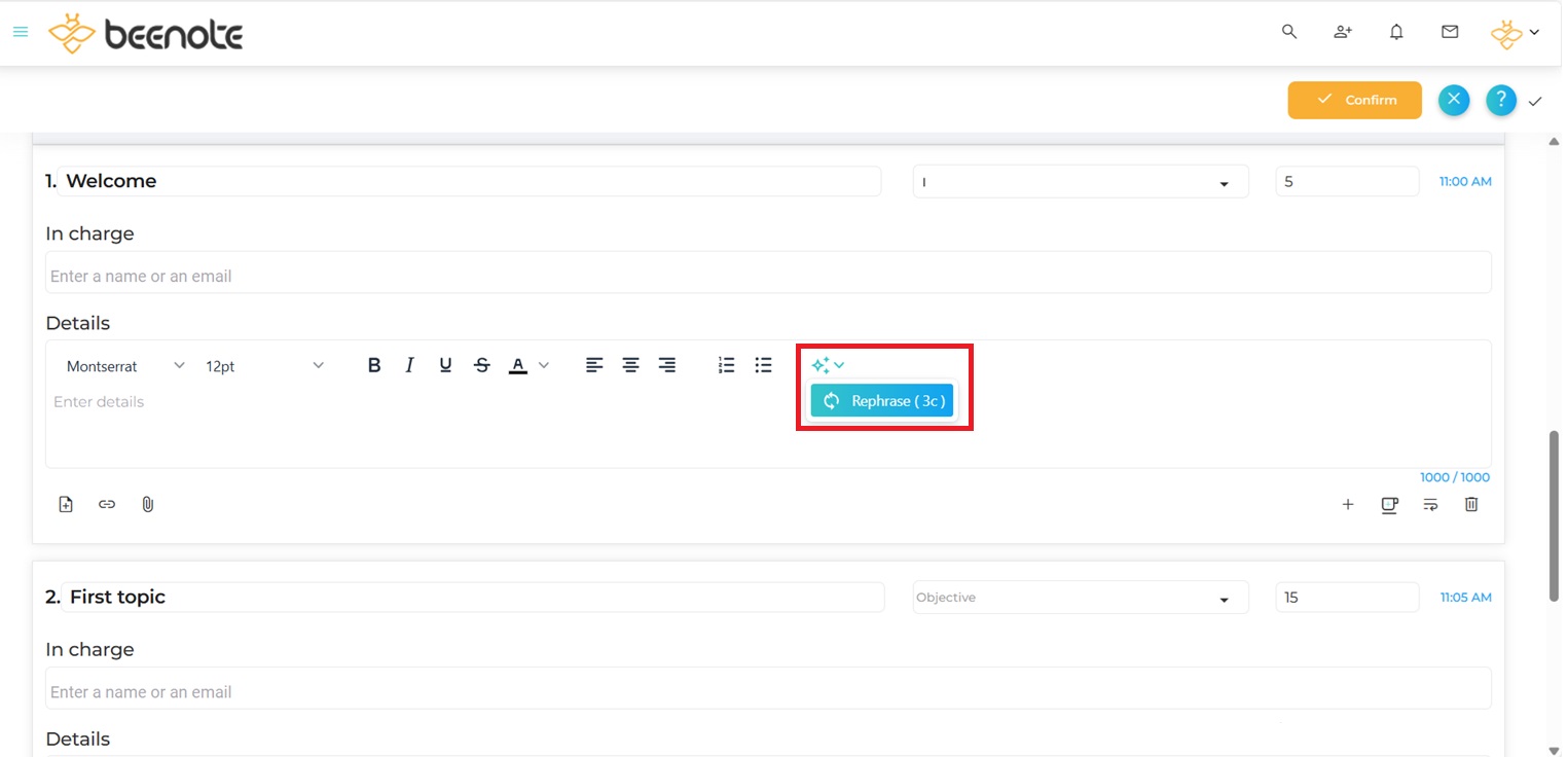 3. The AI Text Rewriting feature can be used in any text field within the Beenote application.