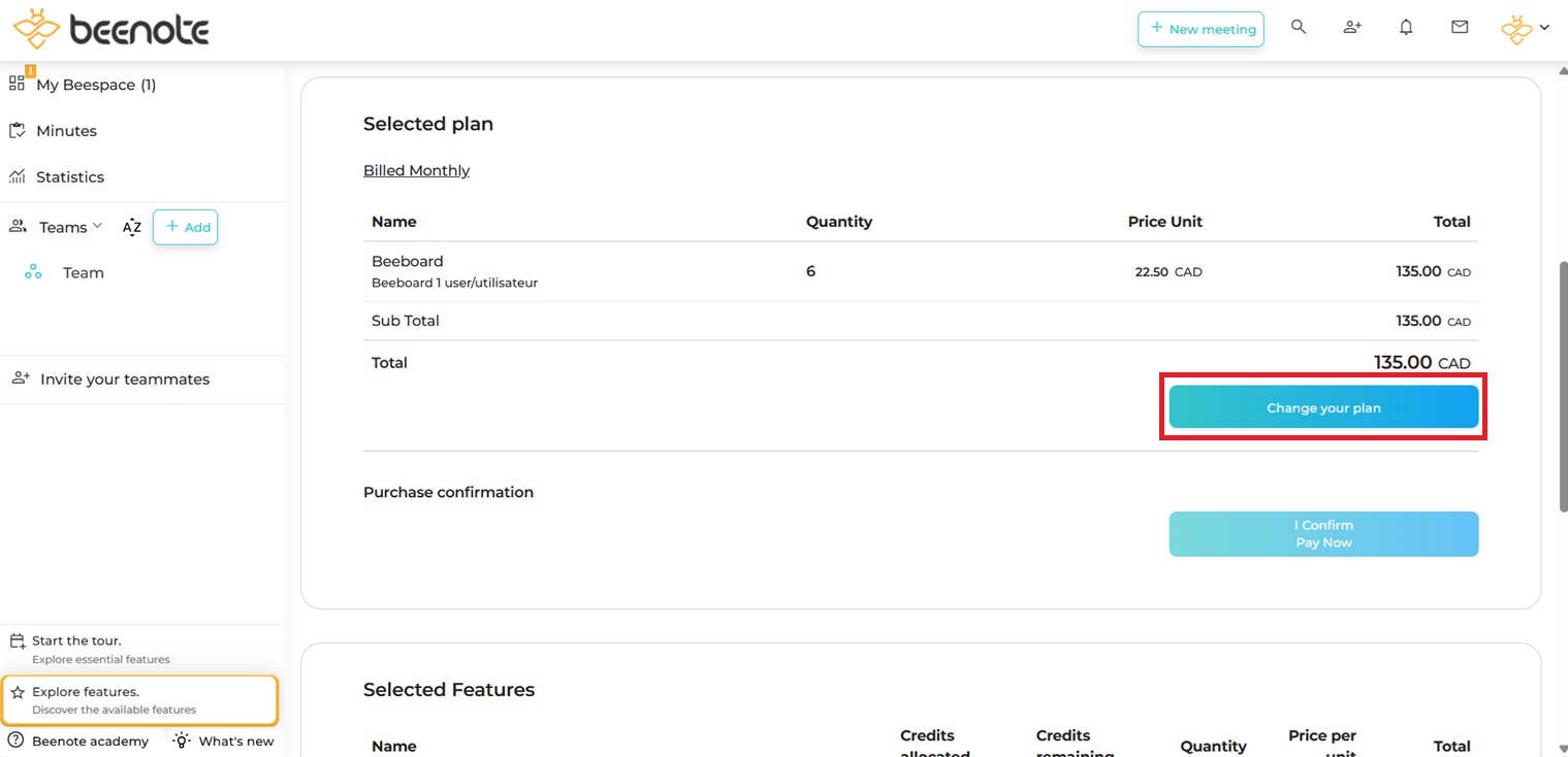 2. If you don’t yet have a Beenote subscription, you will be redirected to Select a plan tab.