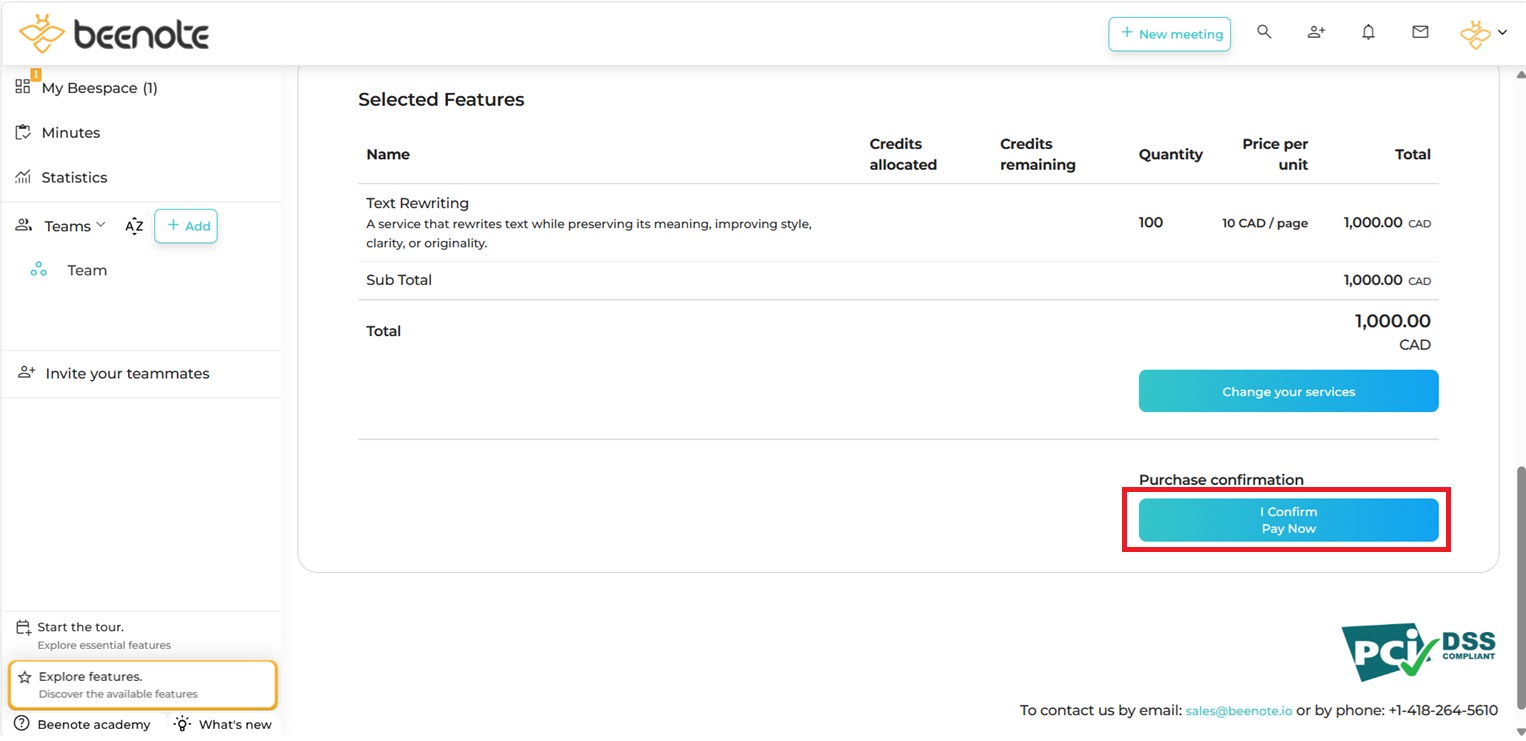 5. To confirm the purchase of the AI feature, click on I Confirm Pay Now button.