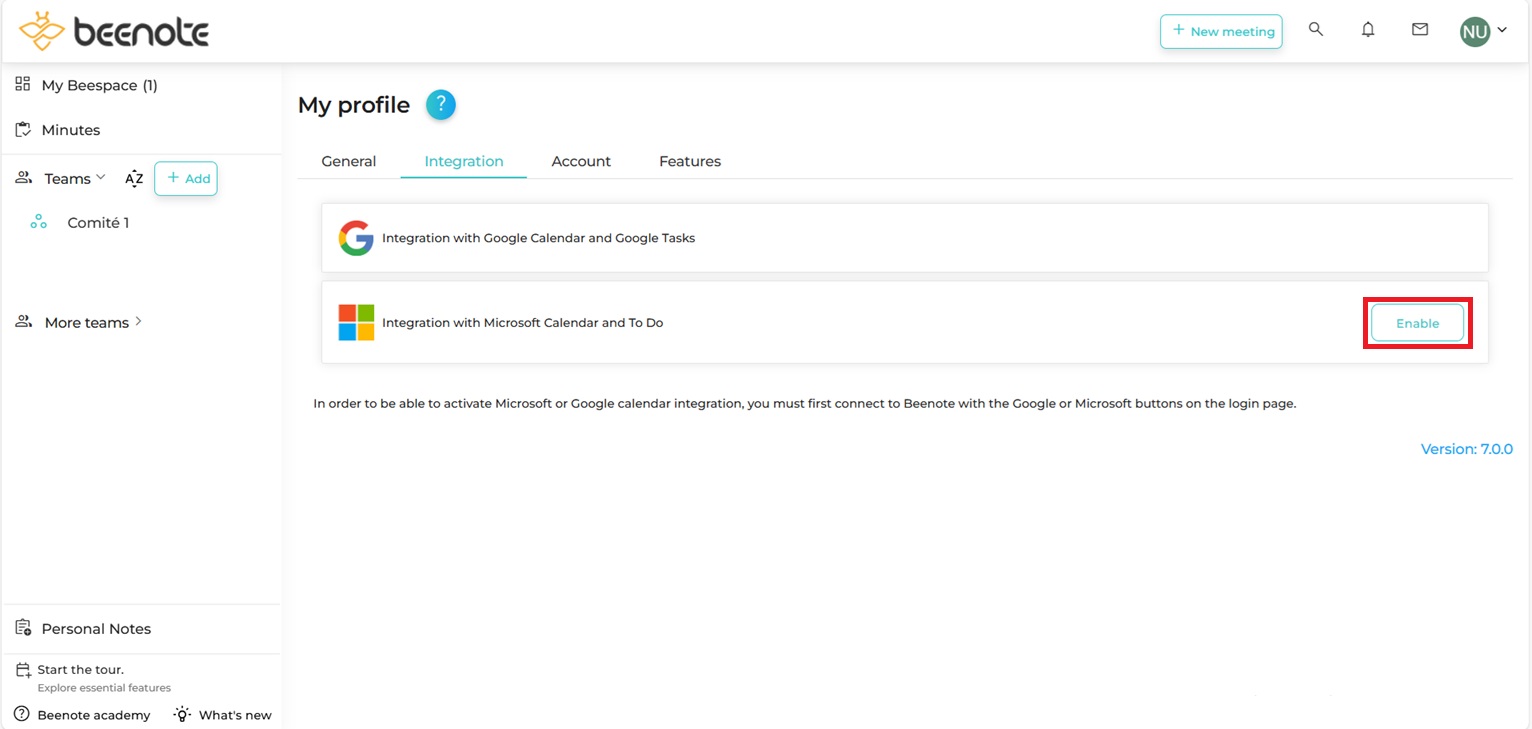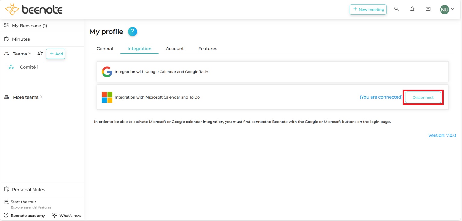 2. Once in Beenote, click on your profile picture and select My Profil.