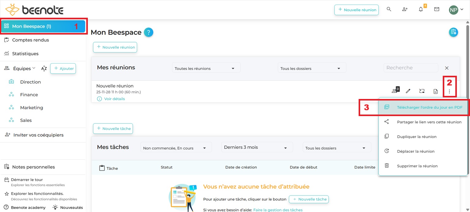 N.B: Même si vous faites partie de l’équipe de travail dans laquelle s’inscrit la réunion, mais que vous n’avez pas assigné de rôles assignés dans cette réunion, vous n’aurez pas accès à son ordre du jour.