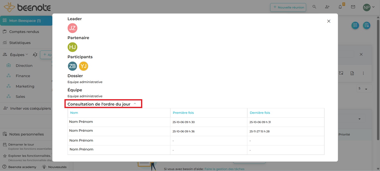 Avec Beenote, vous pouvez même voir qui a vu l’ordre du jour avant la rencontre avec la journalisation des accès.