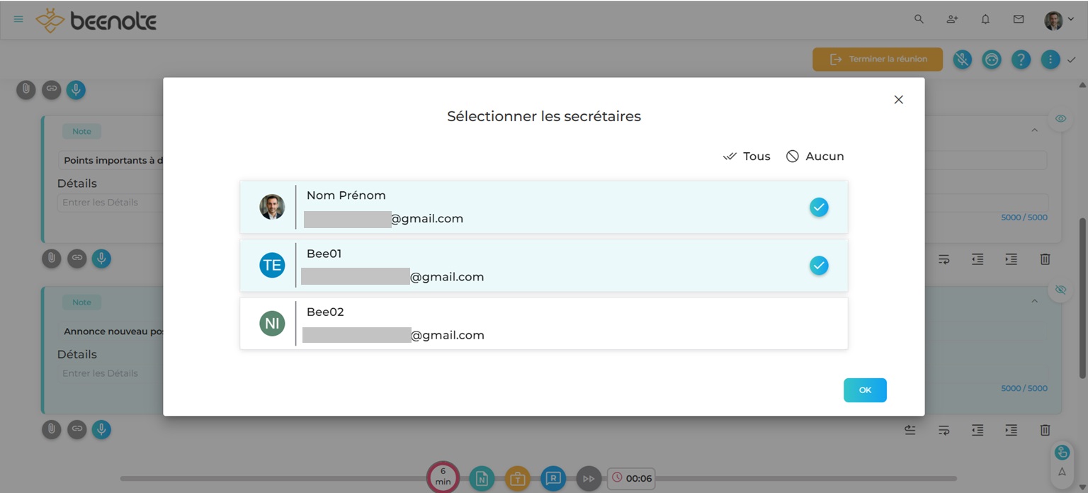 Ensuite, une fenêtre apparaîtra pour confirmer la sélection des secrétaires, donc les utilisateurs qui auront le droit de voir tout le contenu de la réunion. Cliquez sur OK.