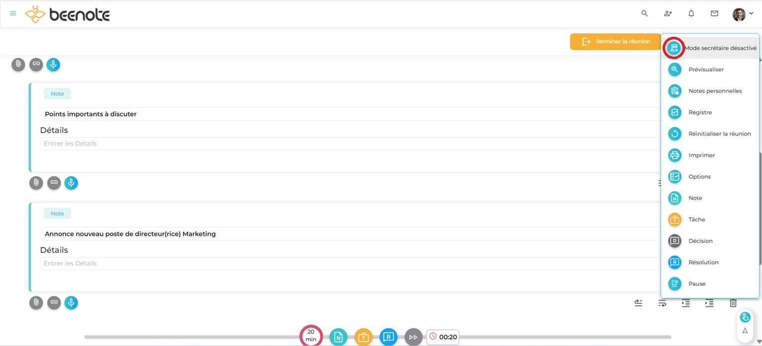 Le mode secrétaire après la réunion