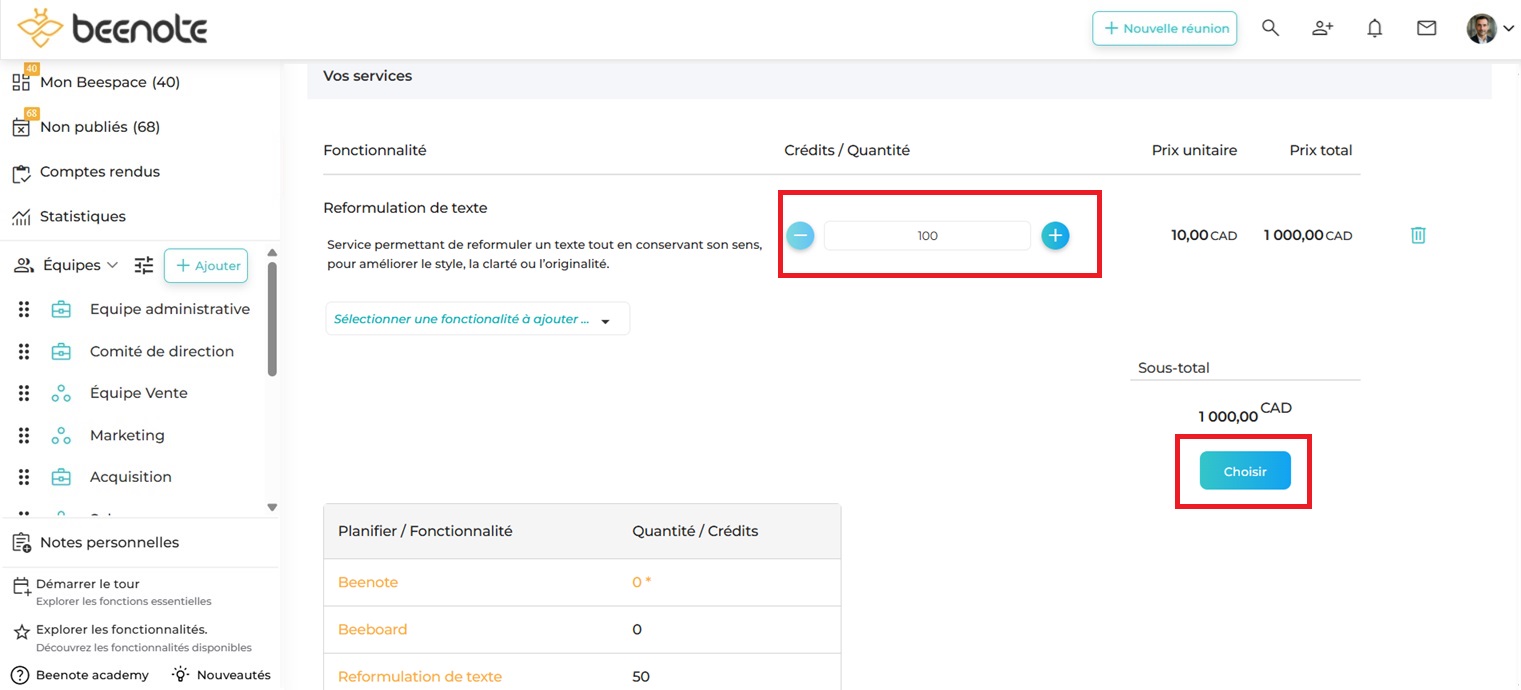 4. Choisissez le nombre de crédits désiré. Par la suite, cliquez sur le bouton Choisir.
