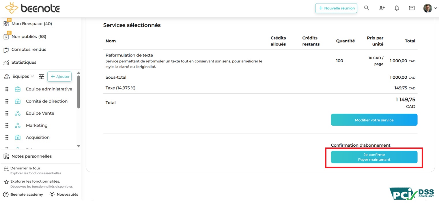 5. Pour confirmer l’achat de la fonctionnalité IA, cliquez sur le bouton Je confirme Payer maintenant.