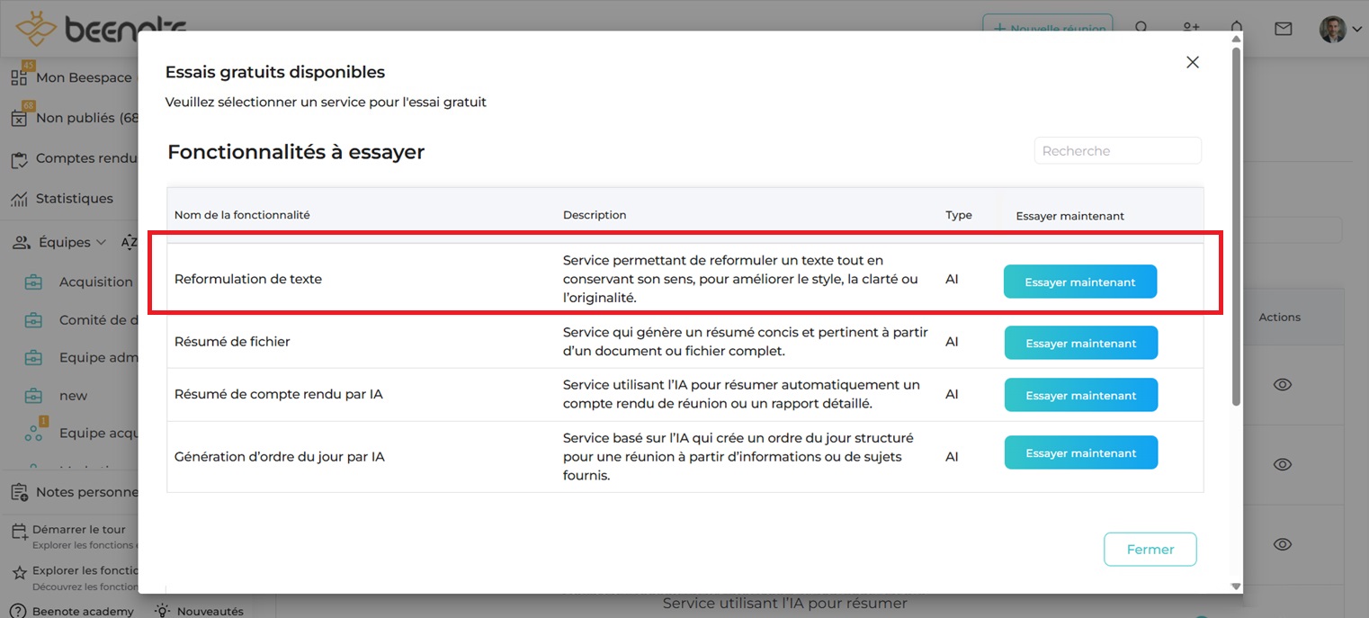 4. Cliquez sur le bouton Essayer Maintenant pour activer le test de cette fonctionnalité IA.