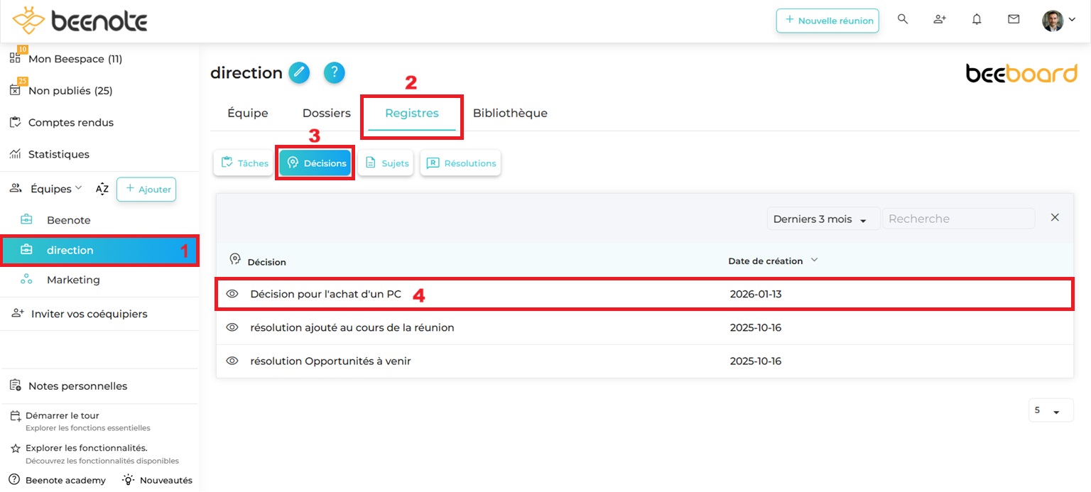 Consulter le registre des décisions