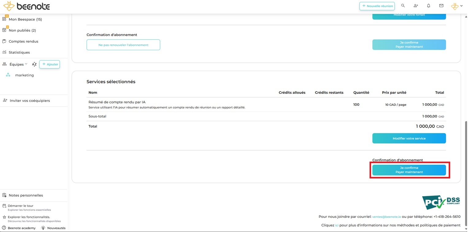 5. Pour confirmer l’achat de la fonctionnalité IA, cliquez sur le bouton Je confirme Payer maintenant.