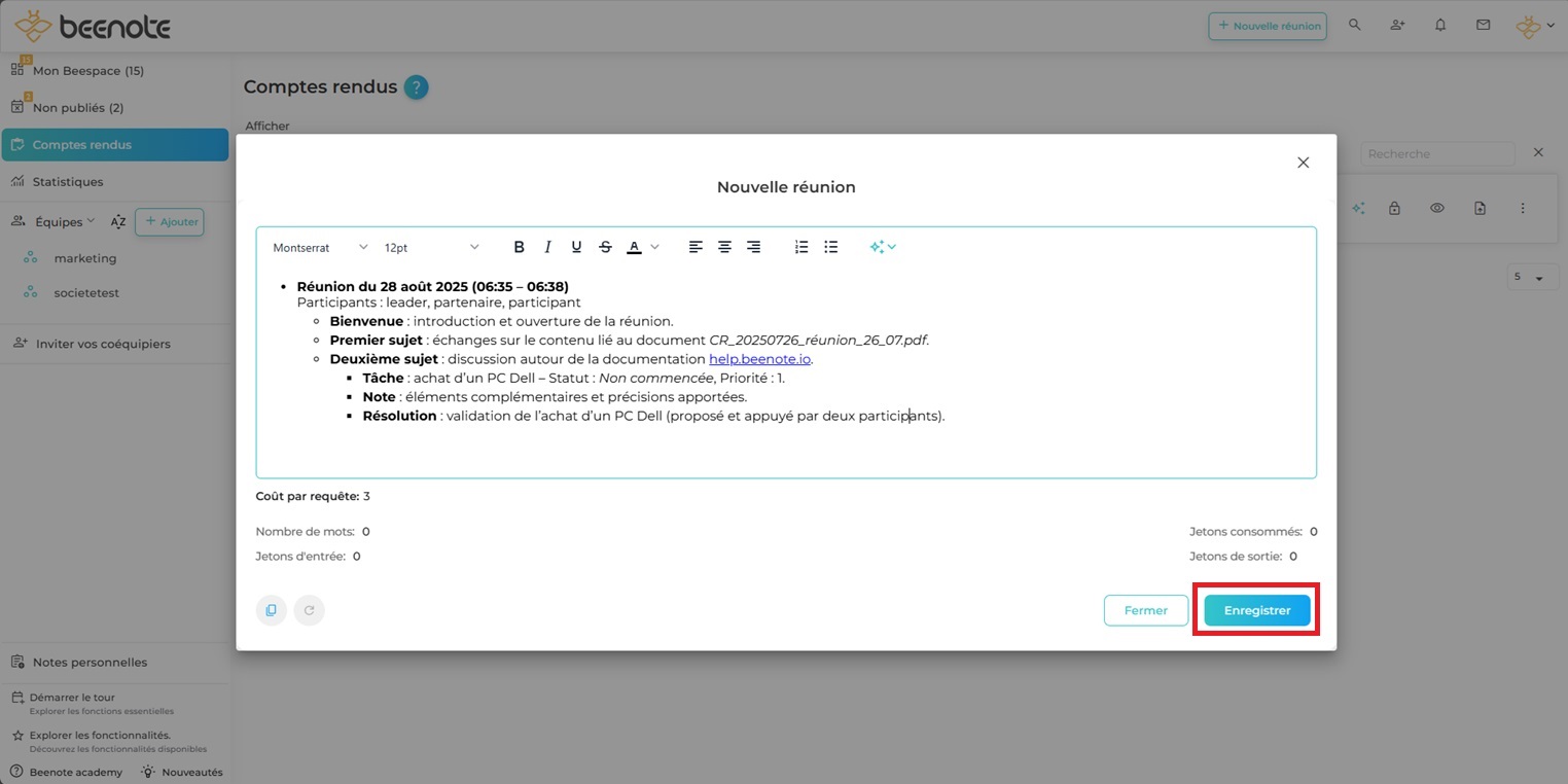 5. Ensuite, cliquez sur le bouton Enregistrer pour valider le résumé généré.