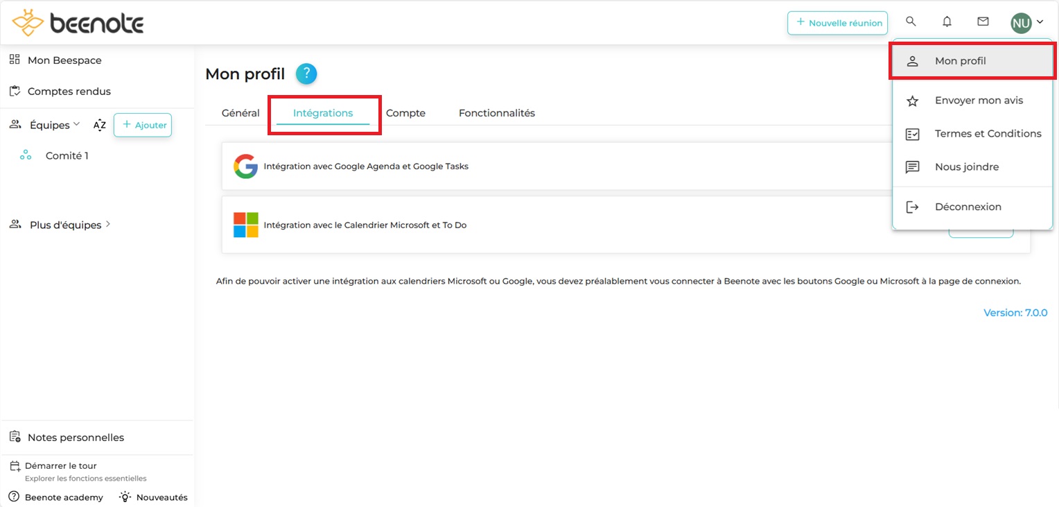 2. Une fois dans Beenote, cliquez sur votre image de profil, puis dans la barre déroulante, choisissez Mon profil.