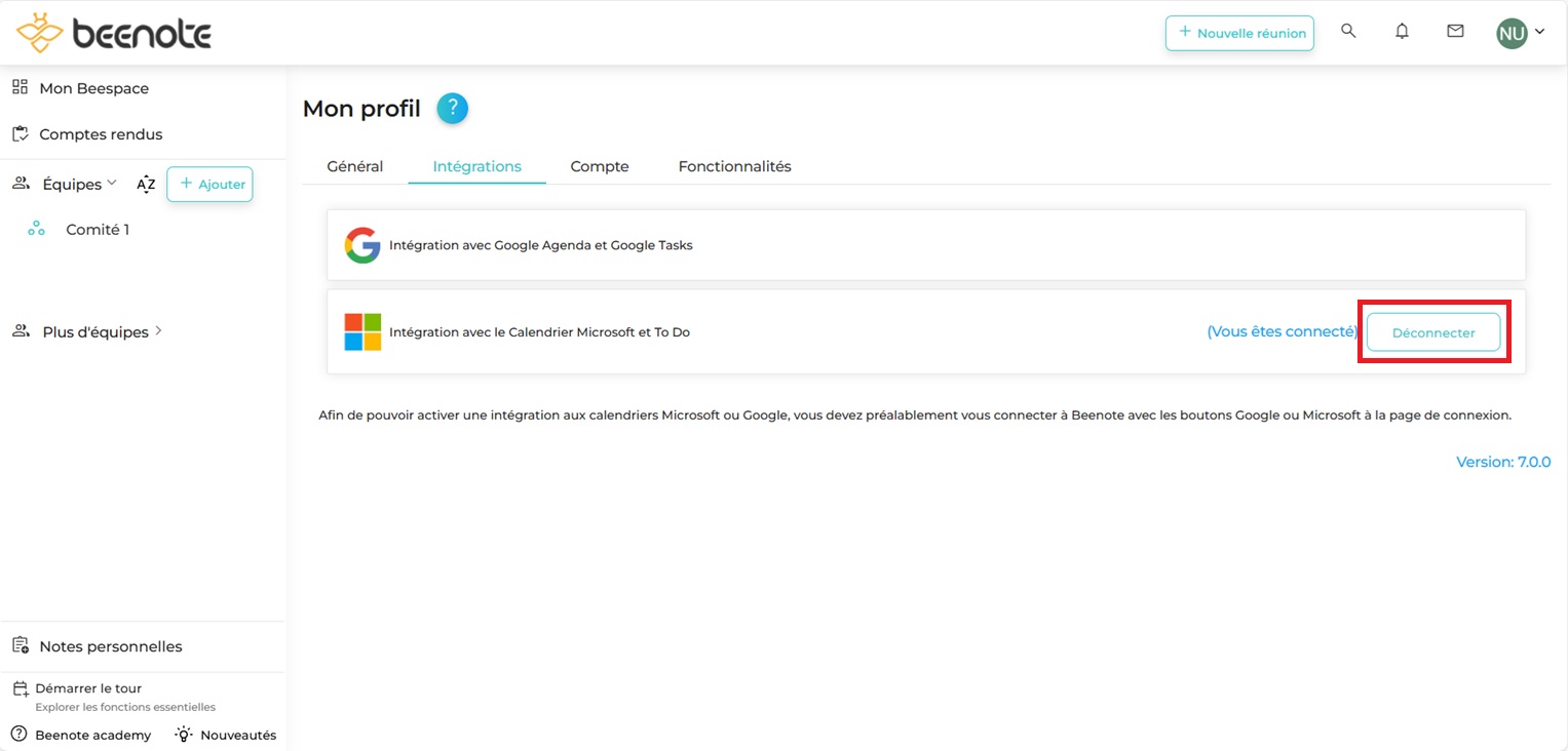 3. Selectionnez Déconnecter dans l’encadré où se trouve Microsoft et To Do.